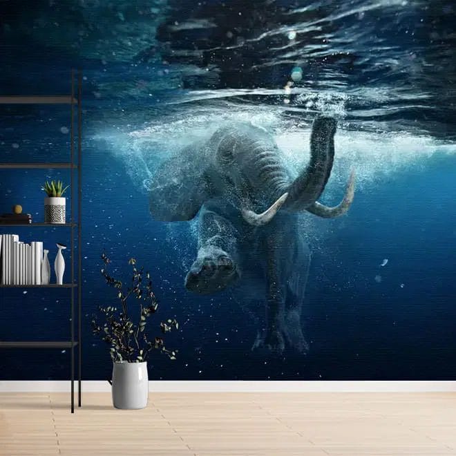 Wat een waanzinnige foto van deze zwemmende olifant. Een duidelijk beeld van iets wat je niet snel zou verwachten. Dit fotobehang zou perfect passen in een modern of Scandinavische interieurstijl. Je maakt met deze foto een statement! Geschikt voor in je woonkamer, slaapkamer en ook zeker voor in je bedrijfspand.